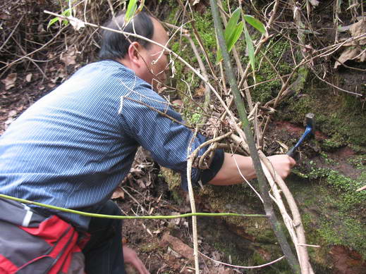 王根寶隊長在留壩縣桑園壩大官長溝之西溝鐵多金屬礦點(diǎn)檢查工作