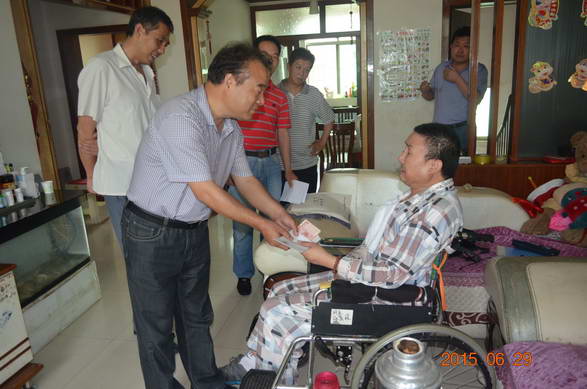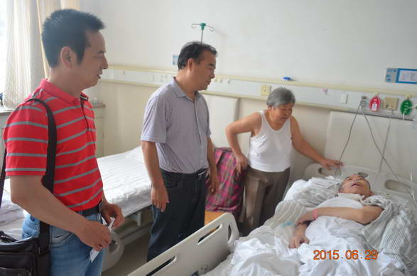 在患重病職工張有權家里,王書記仔細詢問病情恢復情況,并送上了慰問金。張有權雖不能流暢表達,但是熱淚盈眶,緊緊拉住王書記的手。王書記叮囑張有權要好好養病,爭取早日康復。