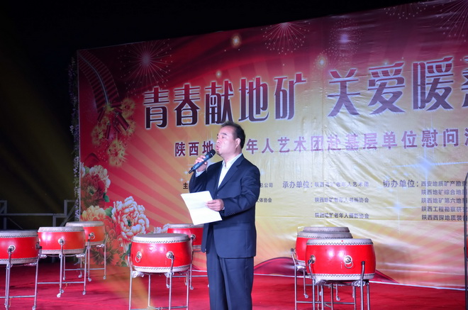 2015年10月19日下午十九點(diǎn)三十分由陜西省地質(zhì)礦產(chǎn)開發(fā)總公司、陜西地礦總公司老年人文體協(xié)會主辦的“青春獻(xiàn)地礦 關(guān)愛暖桑榆”重陽節(jié)下基層慰問演出在我隊舉行。總公司副總經(jīng)理艾亞雄、副總工程師王根寶及總公司有關(guān)部門負(fù)責(zé)人、部分兄弟單位的領(lǐng)導(dǎo)、我隊領(lǐng)導(dǎo)班子成員一同觀看了演出。隊黨委書記王戰(zhàn)社發(fā)表了熱情洋溢的致辭。