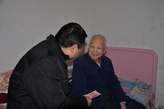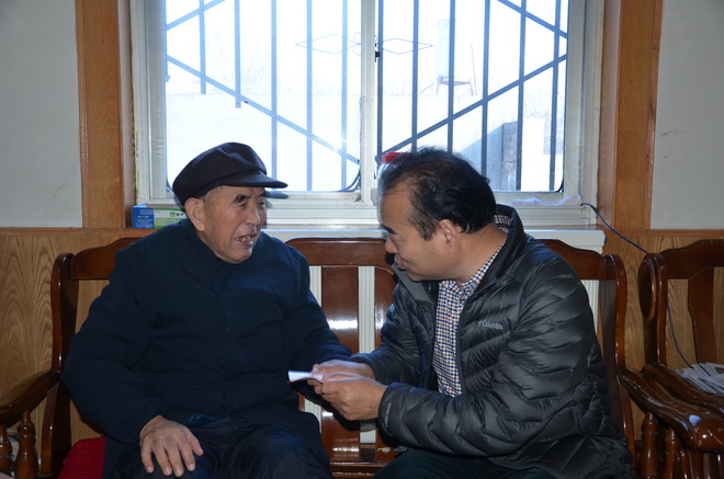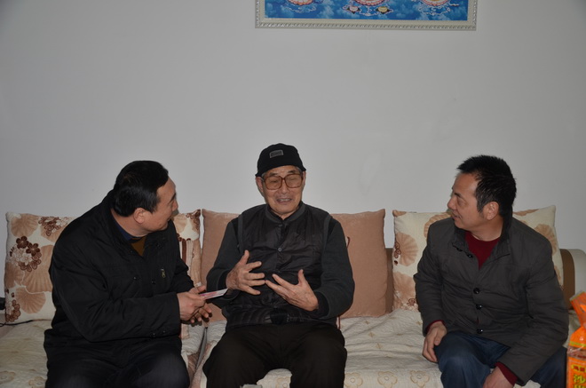 圖為工會主席夏元鵬慰問老干部、抗戰老兵農光謀