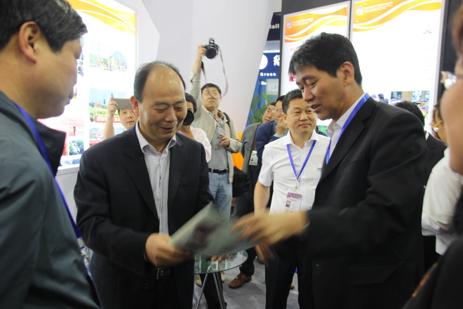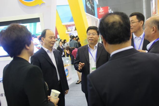 趙廷周董事長陪同姚引良副省長巡視地礦總公司展館