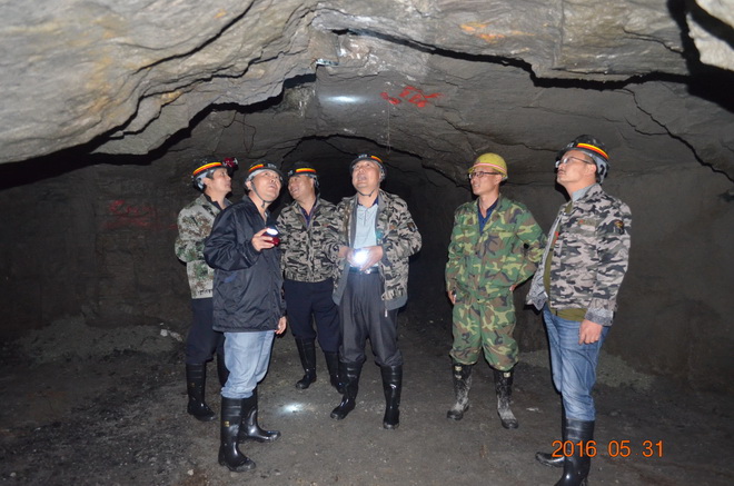 王隊長一行首先來到工程公司鎮安坑道鉆項目工地,顧不上休息就進了坑道開始工作,詳細了解工程進度、安全措施。隨后又馬不停蹄的來到隊礦權中心“鎮安桂林溝鉬普查”項目組,詳細檢查了填圖工作、防護用品的配備等。在兩項目駐地,分別召開了安全生產現場會。