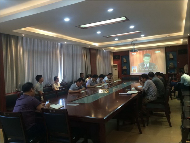 7月4日下午,隊黨委組織隊部地區黨員干部觀看習總書記七一電視講話。