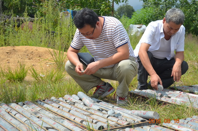 2016年8月15日劉曉東隊(duì)長(zhǎng)前往我隊(duì)礦權(quán)中心鎮(zhèn)安漆樹(shù)凹-桂林溝鉬多金屬礦,檢查指導(dǎo)工作并看望一線職工,分管礦權(quán)中心副隊(duì)長(zhǎng)夏元鵬、紀(jì)委書(shū)記王和平一同前往。