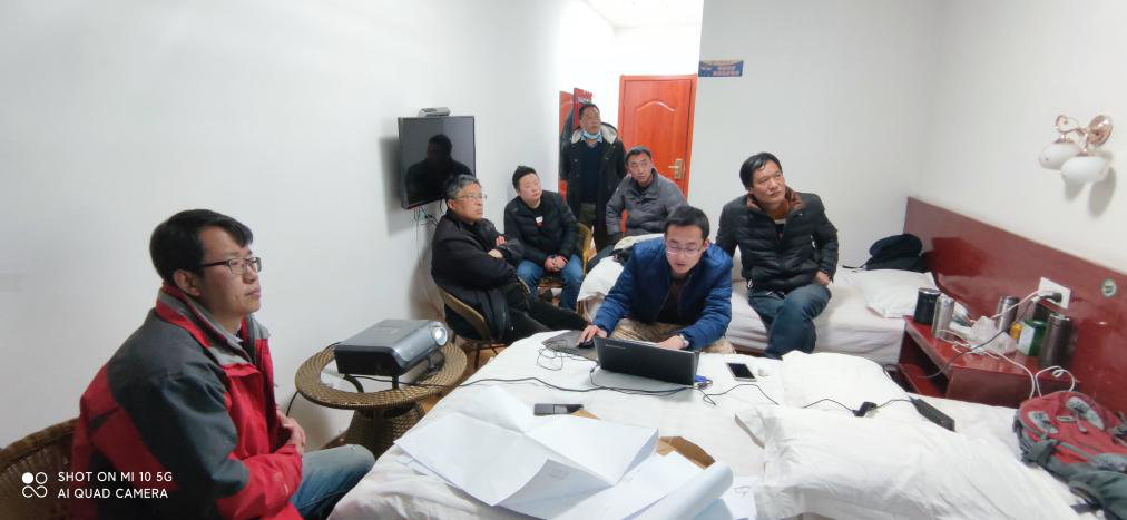 白和一行首先前往施工現場,對正在施工的鉆孔進行了實地檢查,并對鉆取的目標層位巖心進行了詳細觀察,認為該鉆孔已經鉆至目標層位,規模較大,蝕變較強,礦化線索明顯,且具蝕變巖型礦石特征,基本達到地質目標,可按要求進行終孔。隨后在項目駐地召開了技術方案指導會,項目負責就項目進展及成果進行了匯報,白和一行對項目前期所取得的地質成果表示了充分肯定,對同志們不畏嚴寒依然堅守在野外一線表示了充分贊賞,同時他要求項目人員安全生產不放松,站好年前最后一班崗,堅決做好最后的收尾工作,并就綜合物探項目延續設計方案進行了指導,最后領導一行為項目組提前送上了新年祝福。